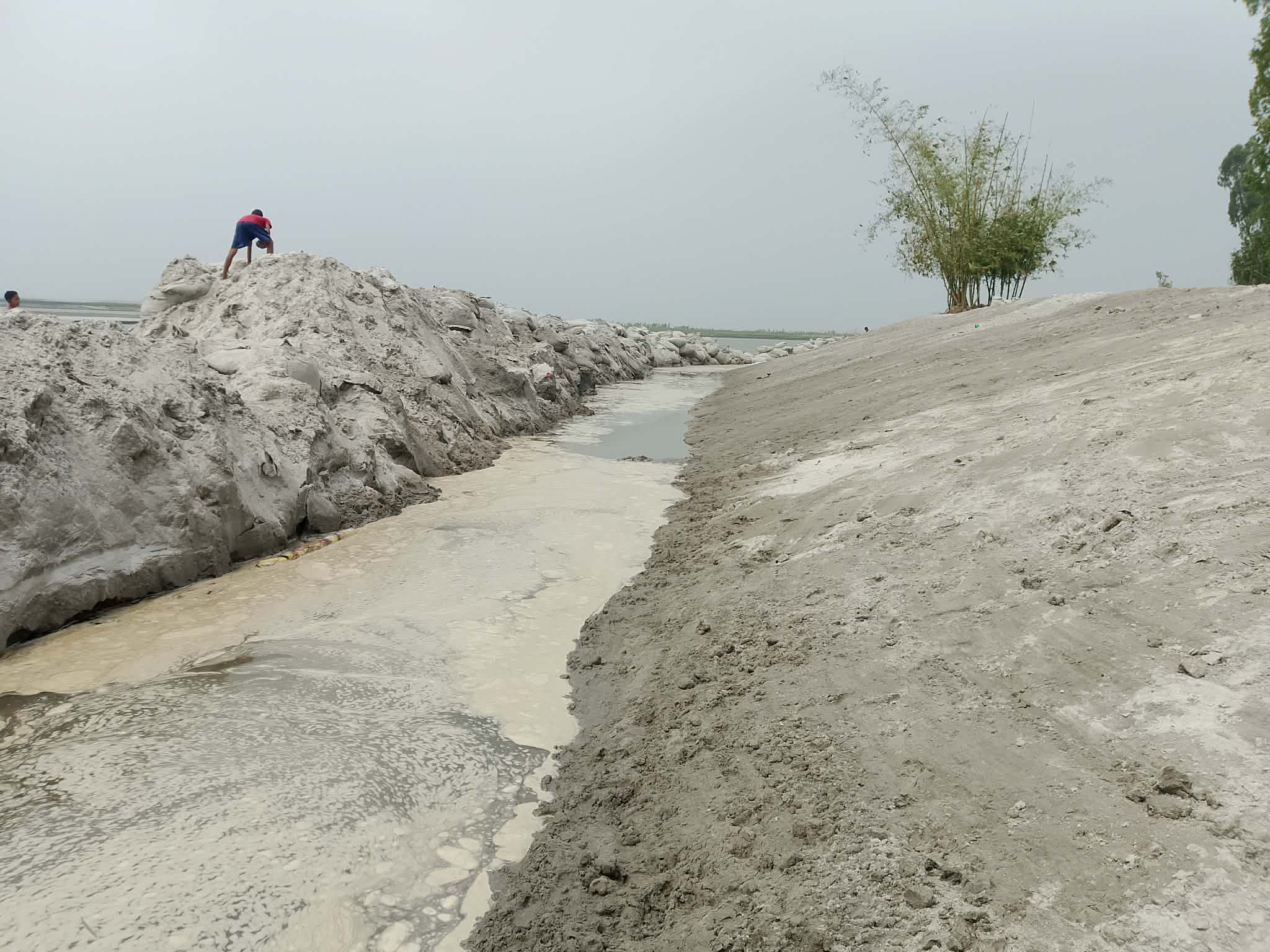 একই এলাকার হরপ্রসাদ রায় দু:খ ও ক্ষোভ প্রকাশ করে বলেন, কাজ তো ঠিকভাবে করছে না,অফিসের লোককে বললেও আমাদের কথা গুরুত্ব দেয় না। এসময় নদীর কিনারে ডাম্পিং করা অসংখ্য ছিড়া ফাটা জিও ব্যাগ সাংবাদিক কে দেখিয়ে বলেন,এখানে যত জিও ব্যাগের বস্তা ফেলানো হয়েছে তার অর্ধেকেই এরকম ছিড়াফাটা যখন বর্ষা মৌসুমে পানি বৃদ্ধি পাবে তখন স্রোতে এই বস্তাগুলো থেকে বালু বেরিয়ে গিয়ে বস্তাগুলো ফাকা হয়ে যাবে। আর এর ফলে এই বেড়ীবাঁধ টি ভেঙ্গে যাওয়ার আশংকা থাকবে।