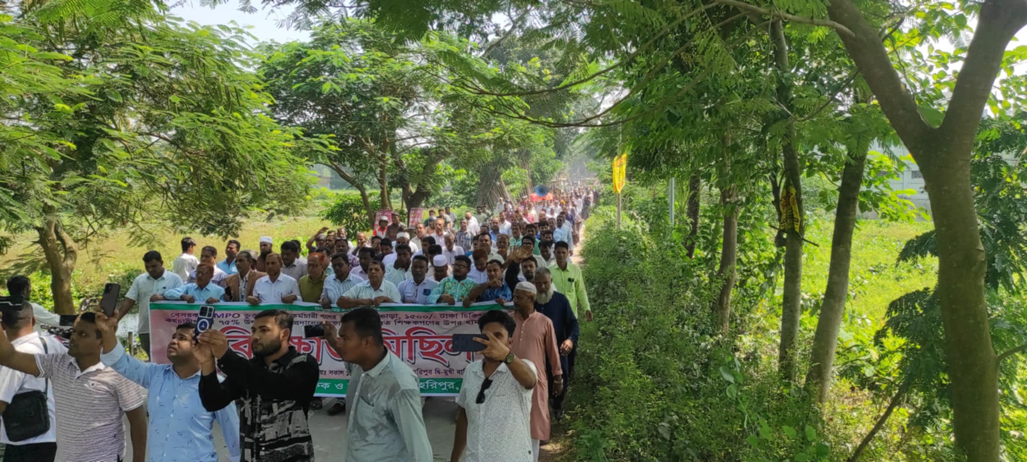 বিক্ষোভ মিছিলে জামুন উচ্চ বিদ্যালয়ের প্রধান শিক্ষক আব্দুল মালেক, সেক্রেটারি বাংলাদেশ বেসরকারি শিক্ষক সমিতি হরিপুর ও ডাঙ্গীপাড়া উচ্চ বিদ্যালয়ের সহকারী প্রধান শিক্ষক মো. আনোয়ার হোসেনের পরিচালনায় মিছিলটি হরিপুর উপজেলার প্রধান প্রধান সড়ক প্রদক্ষিণ শেষে উপজেলা প্রেস ক্লাবের সামনে (থানা মোড়ে) ঘন্টাব্যাপী অবস্থান করেন।