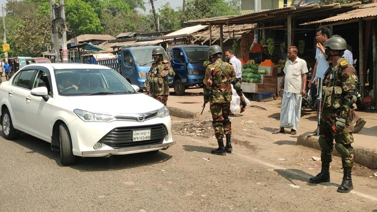 সরেজমিন দেখা যায়, দুপুর ১টার দিকে শহরের বাসস্ট্যান্ড গোল চত্বর থেকে শুরু করে সত্যপীর ব্রিজ, পল্লীবিদ্যুৎসহ বিভিন্ন পয়েন্টে চেকপোস্ট বসিয়ে গাড়ি তল্লাশি করা হচ্ছে। সেনাবাহিনীর কয়েকটি টিমে ভাগ হয়ে মোটরসাইকেল, প্রাইভেটকার, যাত্রীবাহী বাস ও অন্যান্য যানবাহনগুলোকে আলাদা আলাদাভাবে চেক করছে। গাড়ির কাগজপত্র ও ড্রাইভিং লাইসেন্স না থাকায় বেশ কয়েকটি গাড়ির বিরুদ্ধে মামলা দেওয়া হয়েছে।
