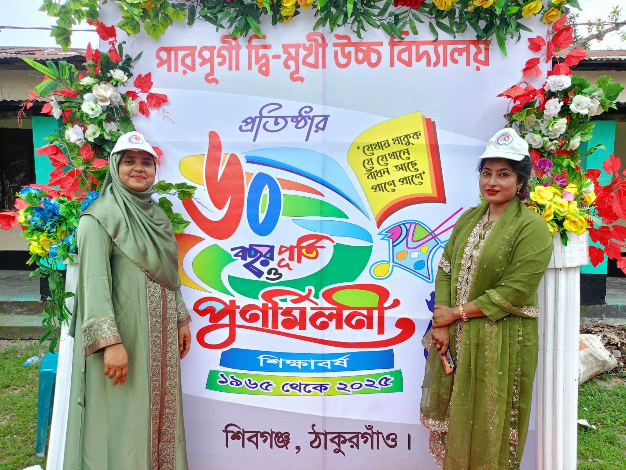 বিশেষ করে ঠাকুরগাঁওয়ের শিবগঞ্জ পারপূগী দ্বিমূখী উচ্চ বিদ্যালয়ের। তাঁকিয়ে আছে সমস্ত অনুষ্ঠানমালা, বিশেষ করে রাতে পথিক নবীর ব্যান্ডের শো অনুষ্ঠিত হওয়ার কথা রয়েছে। সর্বোপরী ঐতিহ্যবাহী এ বিদ্যালয়ের প্রাক্তন ও নতুন শিক্ষার্থীদের মিলনমেলা ও সকল অনুষ্ঠানমালা সুন্দরভাবে সম্পন্ন হবে এমনটাই প্রত্যাশা।