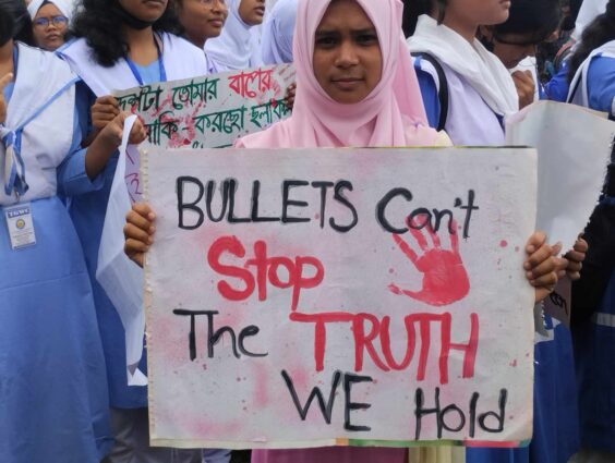 আমাদের এ অস্থিরতা শাসক বুঝছে না। আমরা ভাই-বোন হত্যার বিচার চাই। আজ বৃষ্টিতে ভিজে আন্দোলন করছি, দাবি আদায় না হওয়া পর্যন্ত বৃষ্টির মতো গুলি করা হলেও আমাদের আন্দোলন চলবে।