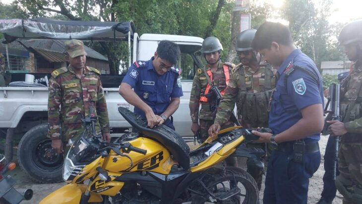 সেনাবাহিনী ও পুলিশের সদস্যরা তাদের সিগন্যাল দিলে মোটরসাইকেল ফেলে দৌড় দেয় তারা। পরে মোটরসাইকেলটি জব্দ করে সেনাবাহিনী ও পুলিশের সদস্যরা তল্লাশি করলে গাড়ির সিটের ভেতরে মাদক দ্রব্যের কিছু উপকরণ পাওয়া যায়।