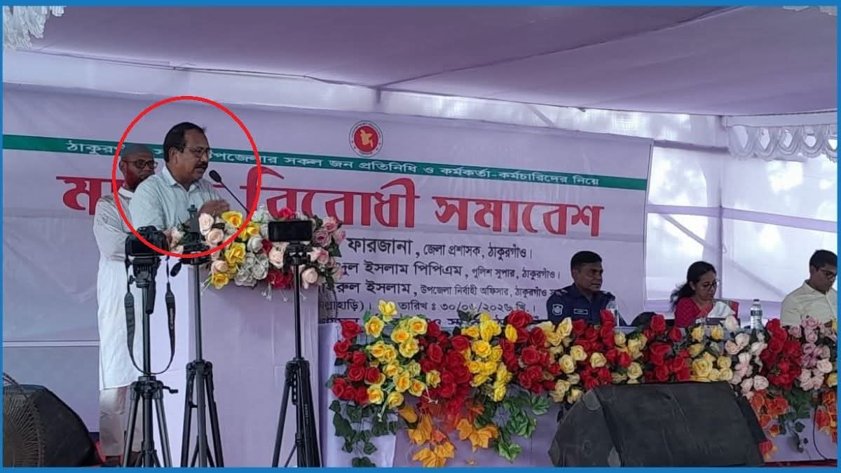 ঠাকুরগাঁও প্রতিনিধিঃ ঠাকুরগাঁও বৈষম্যবিরোধী ছাত্র আন্দোলনের হত্যা মামলার আসামি ও আওয়ামী লীগের নেতাকর্মীদের নিয়ে মাদক বিরোধী সমাবেশ করেছেন ঠাকুরগাঁও সদর উপজেলা প্রশাসন। সোমবার (৩০ জুন) সদর উপজেলা জগনাথপুর ইউনিয়নের বড় খোচাবাড়ি এলাকার বলাকা উদ্যানে এ দিনব্যাপী মাদক বিরোধী সমাবেশ ও সাংস্কৃতিক অনুষ্ঠান করা হয়।