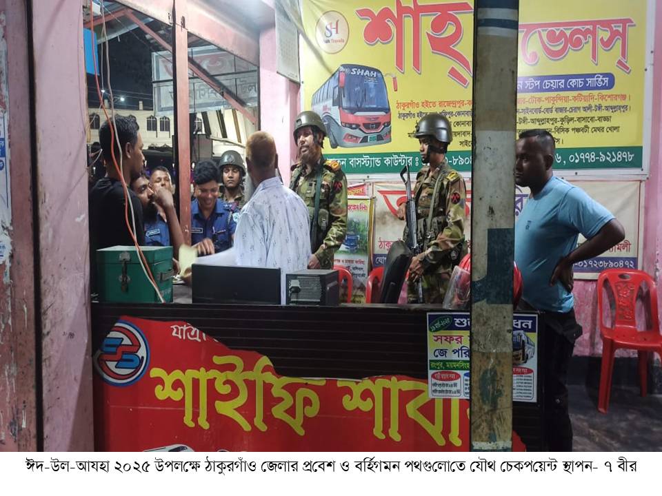 ঠাকুরগাঁও শহরের বিভিন্ন স্থানে চেকপোস্ট বসিয়ে সেনাবাহিনীর তল্লাশি অভিযান