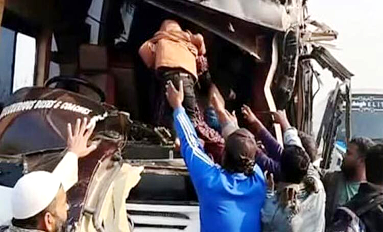 প্রত্যক্ষদর্শীরা জানায়, মাওয়াগামী গ্রীন ঢাকা পরিবহনে পেছন থেকে সুরভি পরিবহন নামের একটি যাত্রীবাহী বাস ধাক্কা দেয়। এতে গ্রীন ঢাকা পরিবহনটি নিয়ন্ত্রণ হারিয়ে তার সামনে থাকা সড়ক নিরাপত্তা ও রক্ষণাবেক্ষণ কাজে নিয়োজিত পেট্রোল গাড়ির পেছনে ধাক্কা দেয়। এসময় সুরভি পরিবহনের ১০-১২ জন গুরুতর আহত হন।
