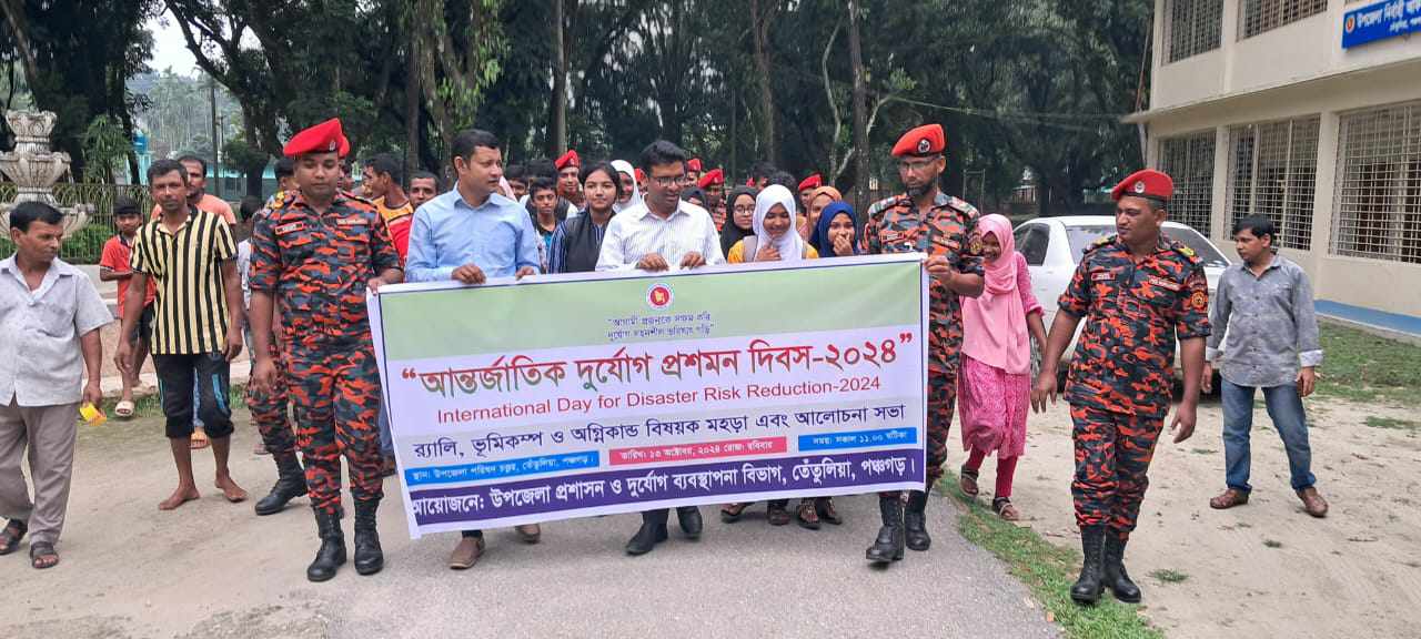 জুলহাস উদ্দীন,স্টাফ রিপোর্টার:“আগামী প্রজন্মকে সক্ষম করি, দুর্যোগ সহনশীল ভবিষ্যৎ গড়ি” এই প্রতিপাদ্যকে সামনে রেখে তেঁতুলিয়ায় যথাযোগ্য মর্যাদায় আন্তর্জাতিক দুর্যোগ প্রশমন দিবস ২৪ পালিত হয়েছে। দিবসটি উপলক্ষ্যে র্যালি, ভূমিকম্প ও অগ্নি বিষয়ক মহড়া ও আলোচনা অনুষ্ঠিত হয়েছে।