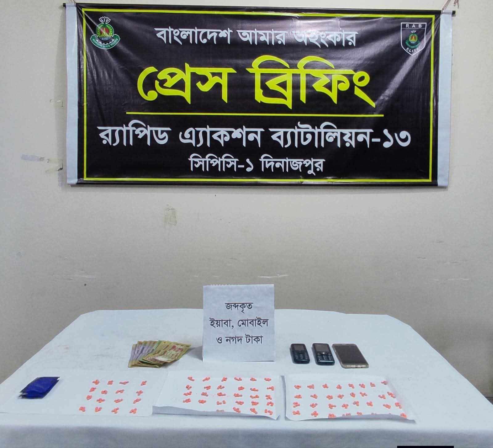 দিনাজপুরে চলন্ত ট্রেনে র‌্যাব ১৩ এর অভিযানে‌ ৩৮৫পিস ইয়াবাসহ ২জন মাদক কারবারিকে গ্রেপ্তার করা হয়েছে।