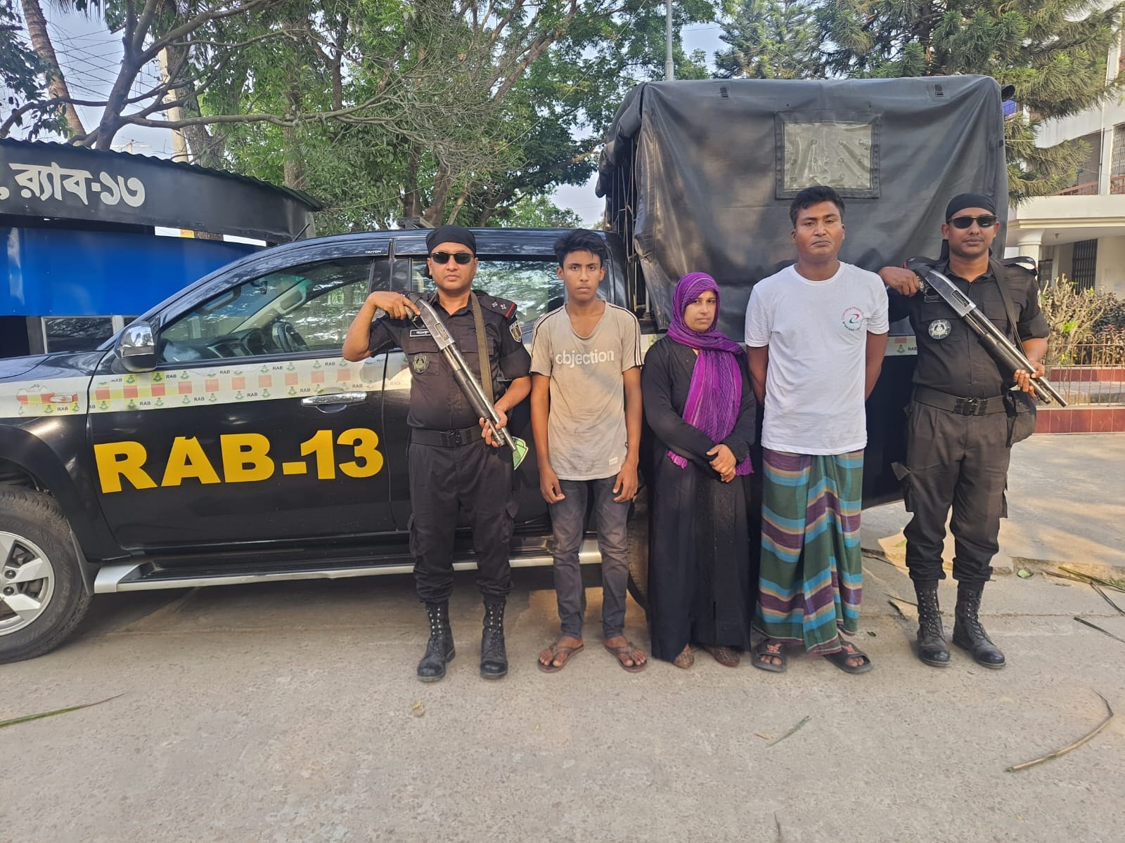 এরই ধারাবাহিকতায় র্যাব-১৩, ক্রাইম প্রিভেনশন কোম্পানী-১, দিনাজপুর গোপন সংবাদের ভিত্তিতে জানতে পারে যে, উক্ত চাঞ্চল্যকর হত্যা কান্ডের ঘটনার আসামীগন সিরাজগঞ্জ জেলার সদর থানা এলাকায় অবস্থান করছে। উক্ত গোপন সংবাদের ভিত্তিতে র্যাব-১৩, সিপিসি-১, দিনাজপুর এবং র্যাব-১২, সদর কোম্পানী, সিরাজগঞ্জ এর দুটি আভিযানিক দল ২০ এপ্রিল ২০২৪খ্রিঃ তারিখ রাত ০৪.০০ ঘটিকায় সিরাজগঞ্জ জেলার সদর থানাধীন ১৪নং ওয়ার্ডের অর্ন্তগত মালসাপাড়া এলাকা হতে যৌথ অভিযান পরিচালনা করে বর্ণিত হত্যা কান্ডের প্রধান আসামী ১। মোঃ মাসুদ রানা (৪১), পিতা- বীর মুক্তিযোদ্ধা মোঃ হাসান আলী, ২। মোছাঃ ফারহানা রিমা (৩৫), স্বামী- মোঃ মাসুদ রানা, ৩। মোঃ ফারহান আলী রনক (১৫), পিতা- মোঃ মাসুদ রানা, সর্ব সাং- বালুয়াডাঙ্গা অন্ধ হাফেজের মোড়, থানা- কোতয়ালী, জেলা- দিনাজপুরদেরকে আত্নগোপনকৃত অবস্থায় গ্রেফতার করতে সক্ষম হয়। ধৃত আসামীগনকে দিনাজপুর জেলার কোতয়ালী থানায় হস্তান্তর করা হয়েছে।