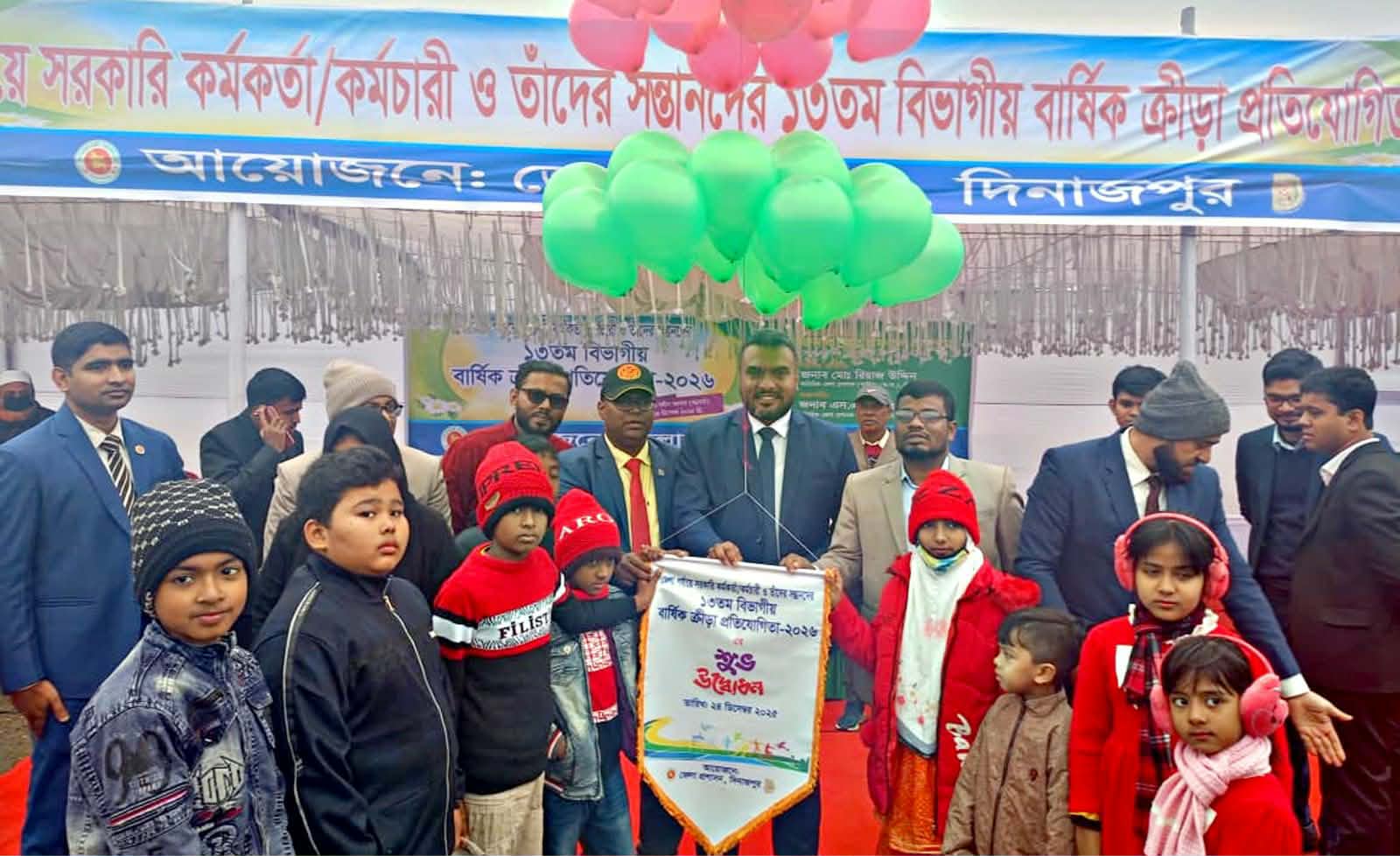২৪ ডিসেম্বর-২০২৫ বুধবার সকালে দিনাজপুর গোর-এ- শহীদ ময়দানে (বড় মাঠ)দিনাজপুর জেলা প্রশাসনের আয়োজনে জেলা পর্যায়ে সরকারি কর্মকর্তা /কর্মচারী ও তাঁদের সন্তানদের ১৩তম বিভাগীয় বার্ষিক ক্রীড়া প্রতিযোগিতা -২০২৬ অনুষ্ঠিত হয়েছে।