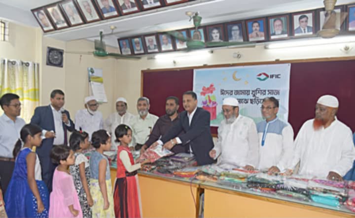 ২০ মার্চ-২০২৫ বৃহস্পতিবার বিকেলে শিশু নিকেতন প্রাঙ্গনে আইএফআইসি ব্যাংক দিনাজপুর শাখার আয়োজনে পবিত্র ঈদ-উল-ফিতর উপলক্ষে শিশু নিকেতনের এতিম নিবাসী এক শতাধিক মেয়েদের মাঝে নতুন কাপড় প্রদান অনুষ্ঠানে প্রধান অতিথি হিসেবে উপস্থিত ছিলেন আইএফআইসি ব্যাংকের উপ-ব্যবস্থাপনা পরিচালক মোঃ রফিকুল ইসলাম। উক্ত অনুষ্ঠানে আইএফআইসি ব্যাংক দিনাজপুর শাখার শাখা ব্যবস্থাপক মোঃ জাকির হোসেন রাসেল এর সভাপতিত্বে বিশেষ অতিথি ছিলেন লায়ন্স শিশু নিকেতনের সভাপতি লায়ন ইকবাল আহমেদ ডন, সেক্রেটারী লায়ন মোঃ শাহেদ রিয়াজ পিম, দিনাজপুর লায়ন্স ক্লাবের ডিরেক্টর লায়ন রেজা হুমায়ুন ফারুক চৌধুরী শামীম।