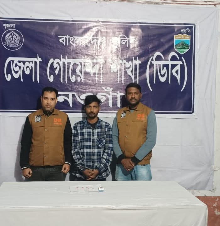 থানা-পুলিশ সূত্রে জানা যায়, গোপন সংবাদের ভিত্তিতে  নওগাঁ জেলা গোয়েন্দা শাখা জানতে পারে পাড় নওগাঁ এলাকায় জনৈক আলিমের পরিত্যক্ত বাসার সামনে একজন ব্যাক্তি ইয়াবা বিক্রয়ের জন্য অবস্থান করছে। এই তথ্যের ভিত্তিতে পুলিশ সুপারের নির্দেশে পার নওগাঁ এলাকায় জনৈক আলিমের পরিত্যক্ত বাসার সামনে আসামিকে গ্রেফতারর ফোর্স পাঠানো হয়। রাত্রে দিকে পার নওগাঁ এলাকায় জেলা গোয়েন্দা পুলিশ (ডিবি) একজনকে দেখতে পায় তার  গতিবিধি সন্দেহ হলে তাকে থামিয়ে শরীর তল্লাশি চালায়। এ সময় তার পকেটে থাকা ১টি সিগারেটের প্যাকেট থেকে ৪০ পিচ ইয়াবা উদ্ধার করা হয়। পরে তাকে আটক করা হয়।