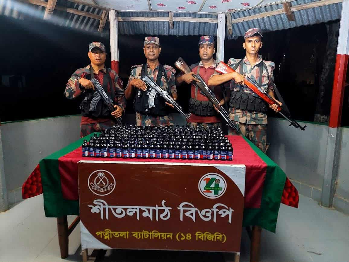 নওগাঁর পত্নীতলায় বিজিবির অভিযানে ১৭৪ বোতল ভারতীয় ফেনসিডিল উদ্ধার