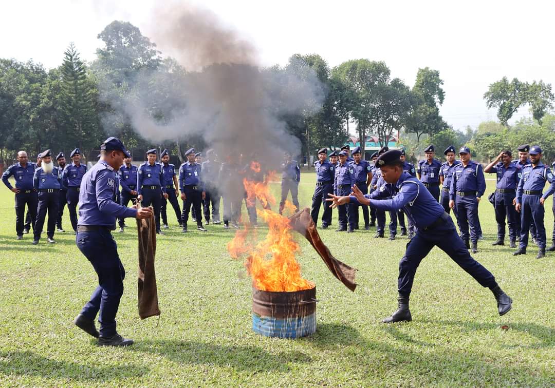 নীলফামারী পুলিশ লাইন্স মাঠে ফায়ার সার্ভিসের কর্মীরা আগুন নিয়ন্ত্রণ করার বিভিন্ন পদ্ধতি উপস্থিত পুলিশ সদস্যদেরকে দেখান এবং পরবর্তীতে পুলিশ সদস্যরা তা অনুশীলন করেন।