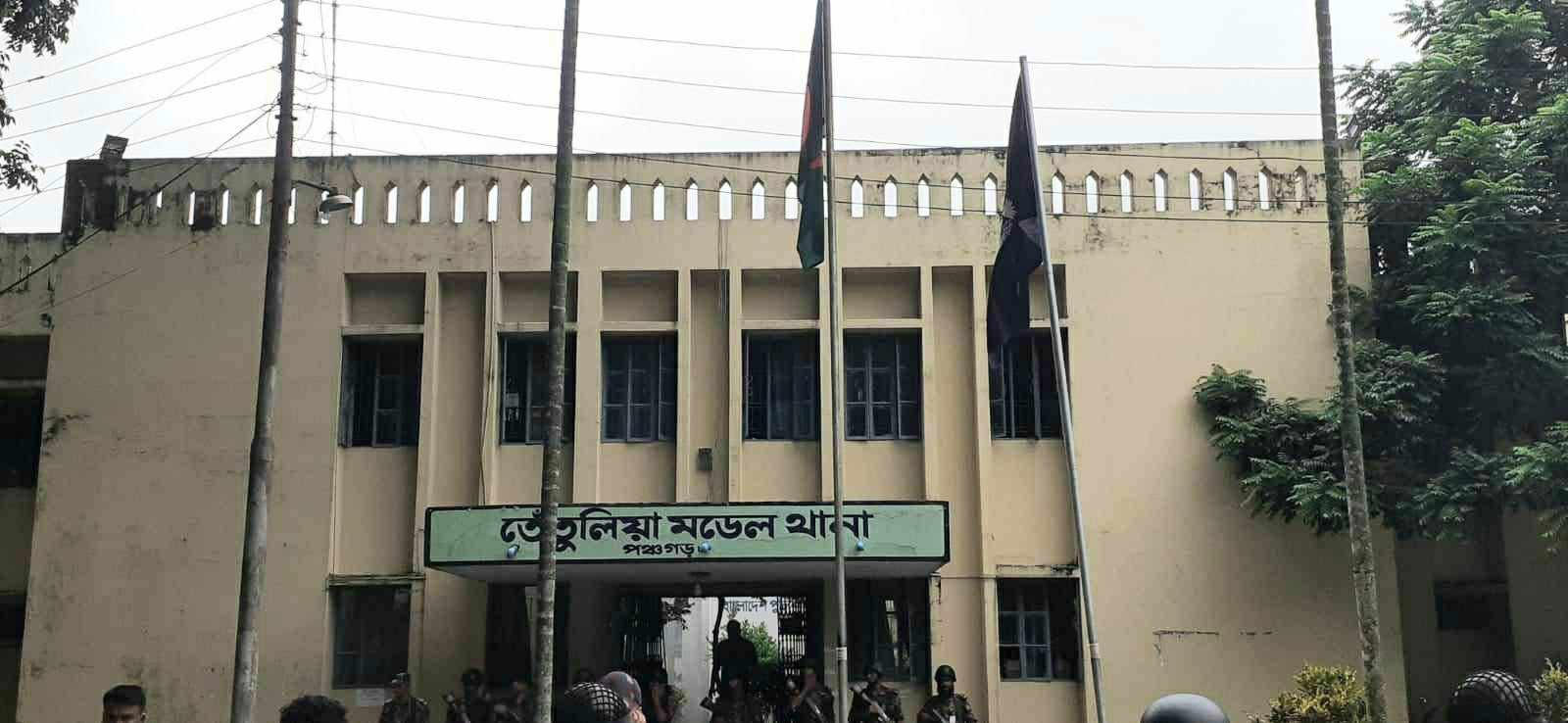 বিষয়টি নিয়ে তারা সকাল থেকে বিকেল পর্যন্ত তেঁতুলিয়া মডেল থানায় আটক হওয়া সাব্বির হোসেনের চাচা ইসমাইল হোসেন কাফনের কাপড় পড়ে গ্রেফতারের তীব্র নিন্দা জানান। একই সাথে অন্যান্য আটকদের পরিবারও থানায় তাদেরকে ছেড়ে দিতে বিক্ষোভ করতে থাকেন। উত্তেজিত পরিস্থিতির খবর পেয়ে বিজিবি সদস্যদের উপস্থিতিতে আটককৃতদের জেলা কারাগারে প্রেরণ করে পুলিশ।