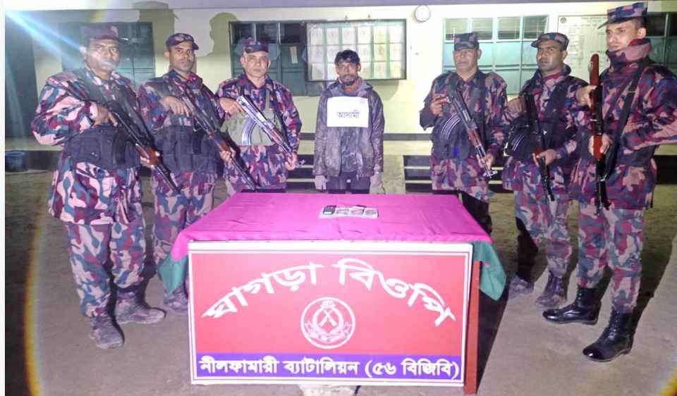 রাত ১২টার দিকে নীলফামারী ব্যাটালিয়ন (৫৬ বিজিবি) এক প্রেস বিজ্ঞপ্তির মাধ্যমে বিষয়টি নিশ্চিত করে।প্রেস বিজ্ঞপ্তিতে জানানো হয়, ঠাকুরগাঁও সেক্টরের অধীন সীমান্ত এলাকায় অবৈধ অনুপ্রবেশ রোধে নীলফামারী ব্যাটালিয়ন (৫৬ বিজিবি) নিয়মিতভাবে তৎপর রয়েছে।