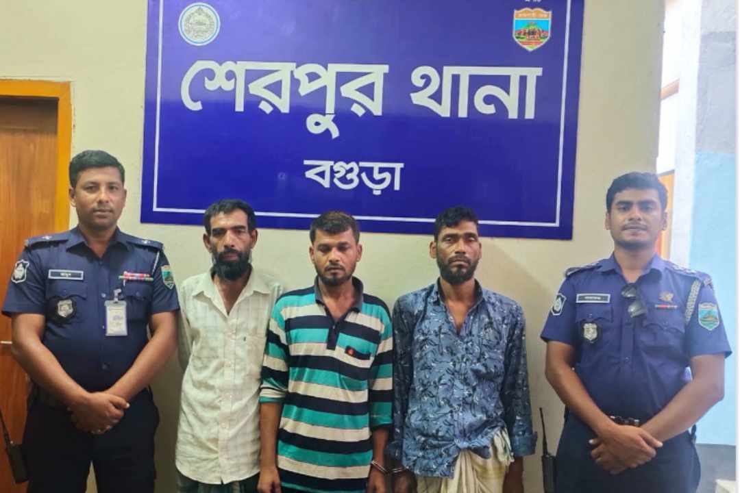 গ্রেপ্তার হওয়া তিনজন হলো মো. ফারুক (৪৫), মো. হাশেম আলী ওরফে বাবু (৪৪) এবং মো. আবু বক্কার সিদ্দিক (৪২)। এসব তথ্য নিশ্চিত করেছেন শেরপুর থানার অফিসার ইনচার্জ শফিকুল ইসলাম শফিক।