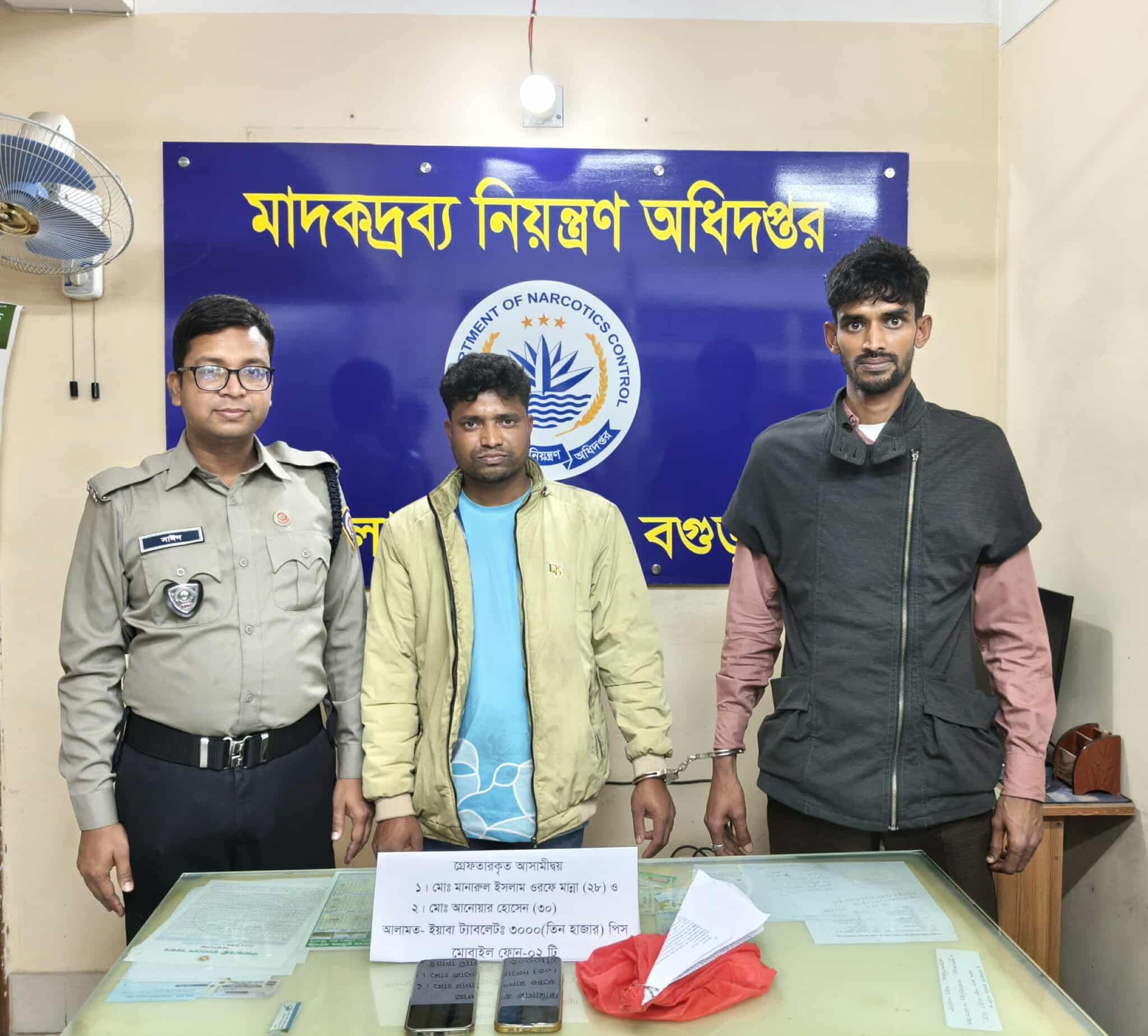 বগুড়ায় সাহরির সময় ৩ হাজার পিস ইয়াবাসহ আটক ২।