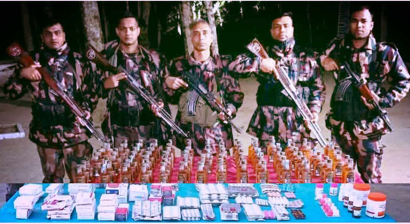মহেশপুরে ফেনসিডিল,মদ,ভারতীয় ঔষধ উদ্ধার,সীমান্ত আটক-৬ জন