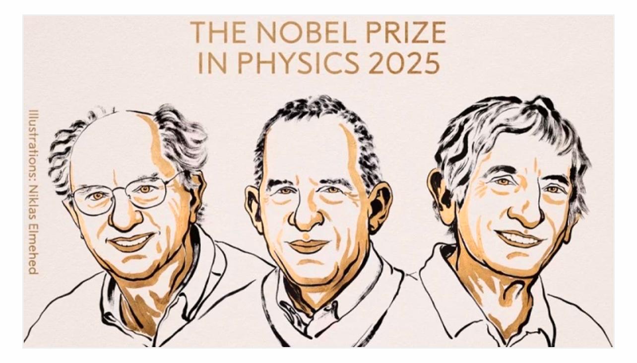 চলতি বছর পদার্থ বিজ্ঞানে নোবেল পুরস্কার পেয়েছেন যুক্তরাষ্ট্রের তিন বিজ্ঞানী। তারা হলেন-জন ক্লার্ক, মিশেল এইচ. ডেভোরেট এবং জন এম. মার্টিনিস। গত মঙ্গলবার (৭ অক্টোবর) রয়্যাল সুইডিশ একাডেমি অব সায়েন্সেস পদার্থ বিজ্ঞানের নোবেল পুরস্কার বিজয়ীদের নাম ঘোষণা করেছে।খবর আইবিএননিউজ ।