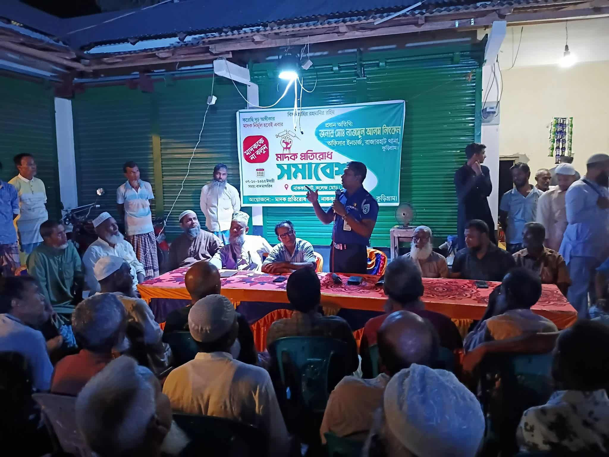 কুড়িগ্রামের রাজারহাট এ করেছি দৃঢ় অঙ্গীকার, মাদক নির্মূল হবেই এবার-এ স্লোগানকে ধারণ করে মঙ্গলবার ৭ অক্টোবর রাত ৯টা থেকে রাজারহাট উপজেলার নাককাটির হাটে অনুষ্ঠিত হয় এক মাদকবিরোধী সমাবেশ।