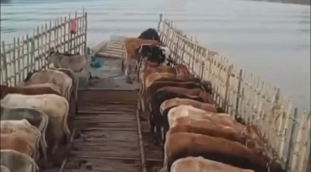 সুনামগঞ্জের সুরমা নদীতে অভিযানে ভারতীয় অবৈধ ৩১টি গরু এবং নৌকসহ ২জন আটক।