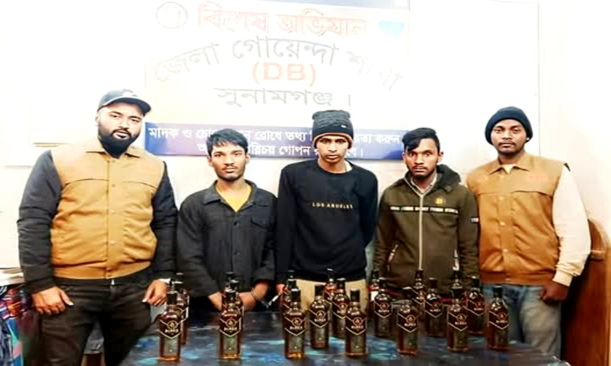 সুনামগঞ্জে ডিবি পুলিশ কর্তৃক বিদেশি মদসহ ৩ মাদক কারবারি গ্রেফতার