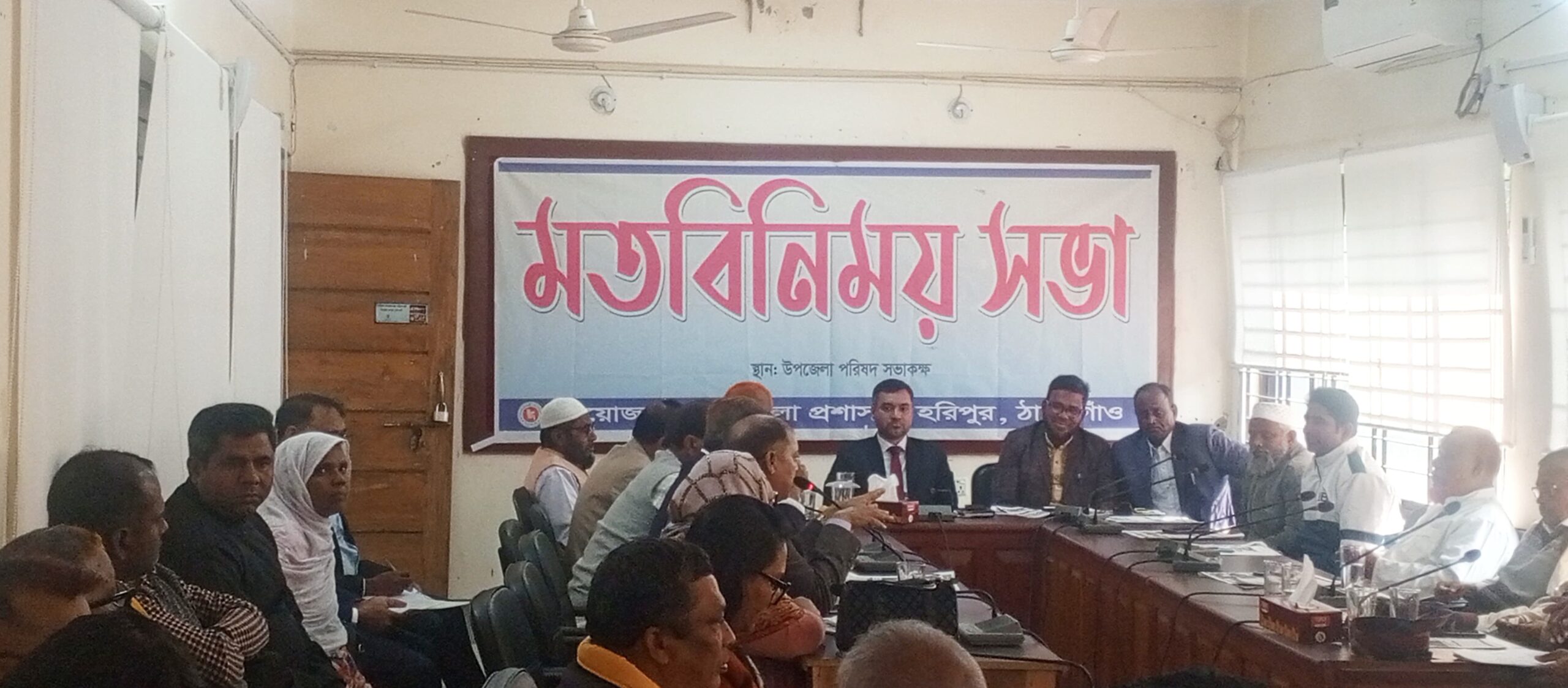 ঠাকুরগাঁওয়ের হরিপুরে স্থানীয় জনপ্রতিনিধি, রাজনৈতিক নেতৃবৃন্দ,গণমাধ্যম প্রতিনিধি,সুশীল সমাজের প্রতিনিধি, শিক্ষা প্রতিষ্ঠানের প্রধান,বিজিপি, এন জিও প্রধান ও ইউপি চেয়ারম্যানগনের সাথে ইউএনওর মতবিনিময় সভা হয়েছে।