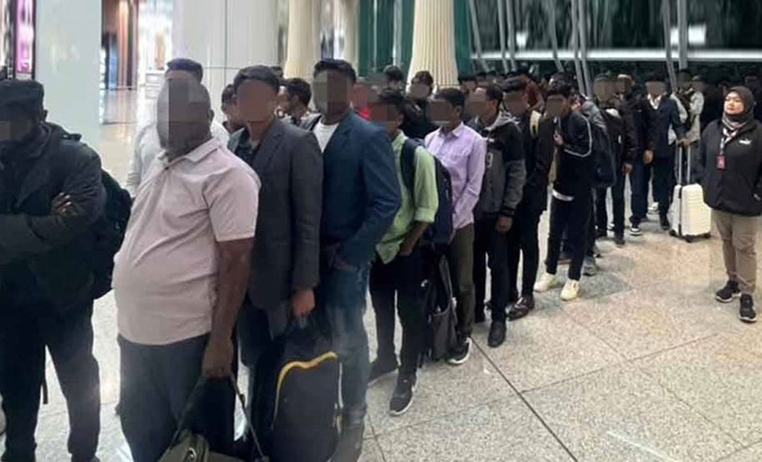 এক বিবৃতিতে একেপিএস জানায়, আটক ব্যক্তিরা পর্যটক হিসেবে প্রবেশের দাবি করলেও তারা ইমিগ্রেশন কাউন্টারের দিকে এগোননি। বরং বিমানবন্দরের খাবারের দোকান ও অন্যান্য জায়গায় ঘোরাফেরা করছিলেন এবং বিশেষ কারো জন্য অপেক্ষা করছিলেন বলে সন্দেহ করা হয়। পরে ১৬ জন পাকিস্তানি, ৪৫ জন বাংলাদেশি ও সাতজন ভারতীয় নাগরিককে কেএলআইএ ইমিগ্রেশন অপারেশন অফিসে নিয়ে যাওয়া হয়। কাগজপত্র যাচাইবাছাই শেষে তাদের আনুষ্ঠানিকভাবে মালয়েশিয়ায় প্রবেশের অনুমতি না দিয়ে নোটিশ টু লিভ (এনটিএল) দেওয়া হয়।