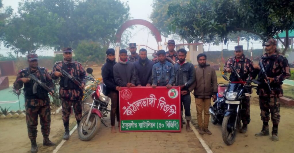 ঠাকুরগাঁও জেলার হরিপুর সীমান্তে অবৈধভাবে অনুপ্রবেশের দায়ে ০৬ জন বাংলাদেশী ও ২টি মোটরসাইকেল আটক করেছেন বিজিবি । শুক্রবার (২০ ফেব্রুয়ারী) আনুমানিক সকাল ০৬:১০ ঘটিকায় ঠাকুরগাঁও...