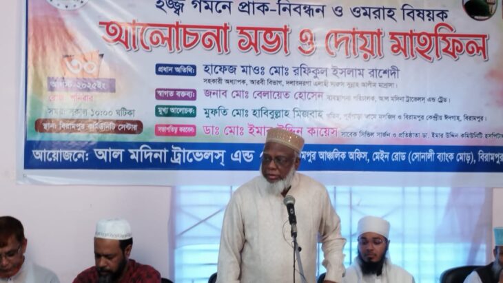 দিনাজপুর জেলার বিরামপুর পৌর শহরে বিরামপুর কমিউনিটি সেন্টারে আল মদিনা ট্রাভেলস এন্ড ট্রেড আয়োজিত ২০২৬ সালের হজ্জ্ব নিবন্ধন উপলক্ষে হজ্জ্ব গমনে প্রাক নিবন্ধন, ওমরা বিষয়ক...