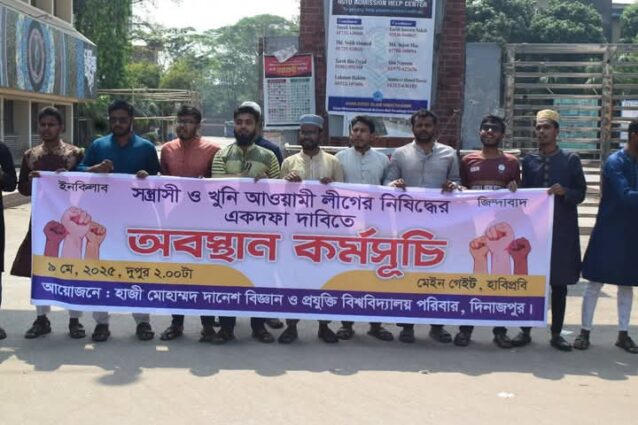 জাহিদ হোসেন, দিনাজপুর প্রতিনিধি: সন্ত্রাসী ও খুনি সংগঠন আওয়ামী লীগকে নিষিদ্ধের এক দফা দাবিতে দিনাজপুরের হাজী মোহাম্মদ দানেশ বিজ্ঞান ও প্রযুক্তি বিশ্ববিদ্যালয়ে (হাবিপ্রবি) অবস্থান কর্মসূচি...