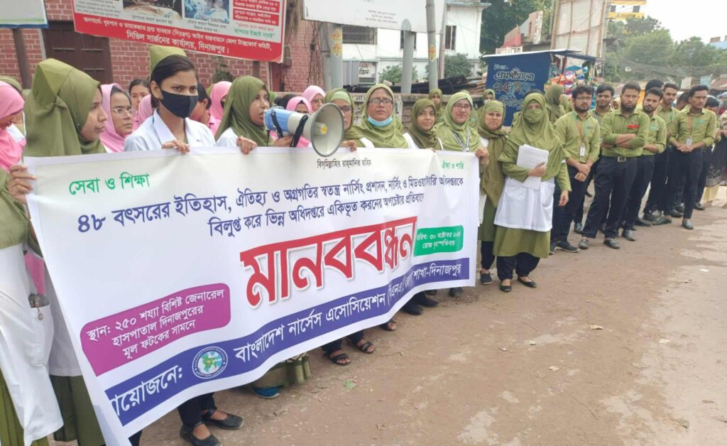 দিনাজপুরে ১০ দফা দাবিতে মানববন্ধন কর্মসূচি পালন করেছে বাংলাদেশ নার্সেস এসোসিয়েশন (বিএনএ) দিনাজপুর জেলা শাখা। বিগত ৪৮ বছরের ইতিহাস, ঐতিহ্য ও অগ্রগতির স্বতন্ত্র নার্সিং প্রশাসন,...